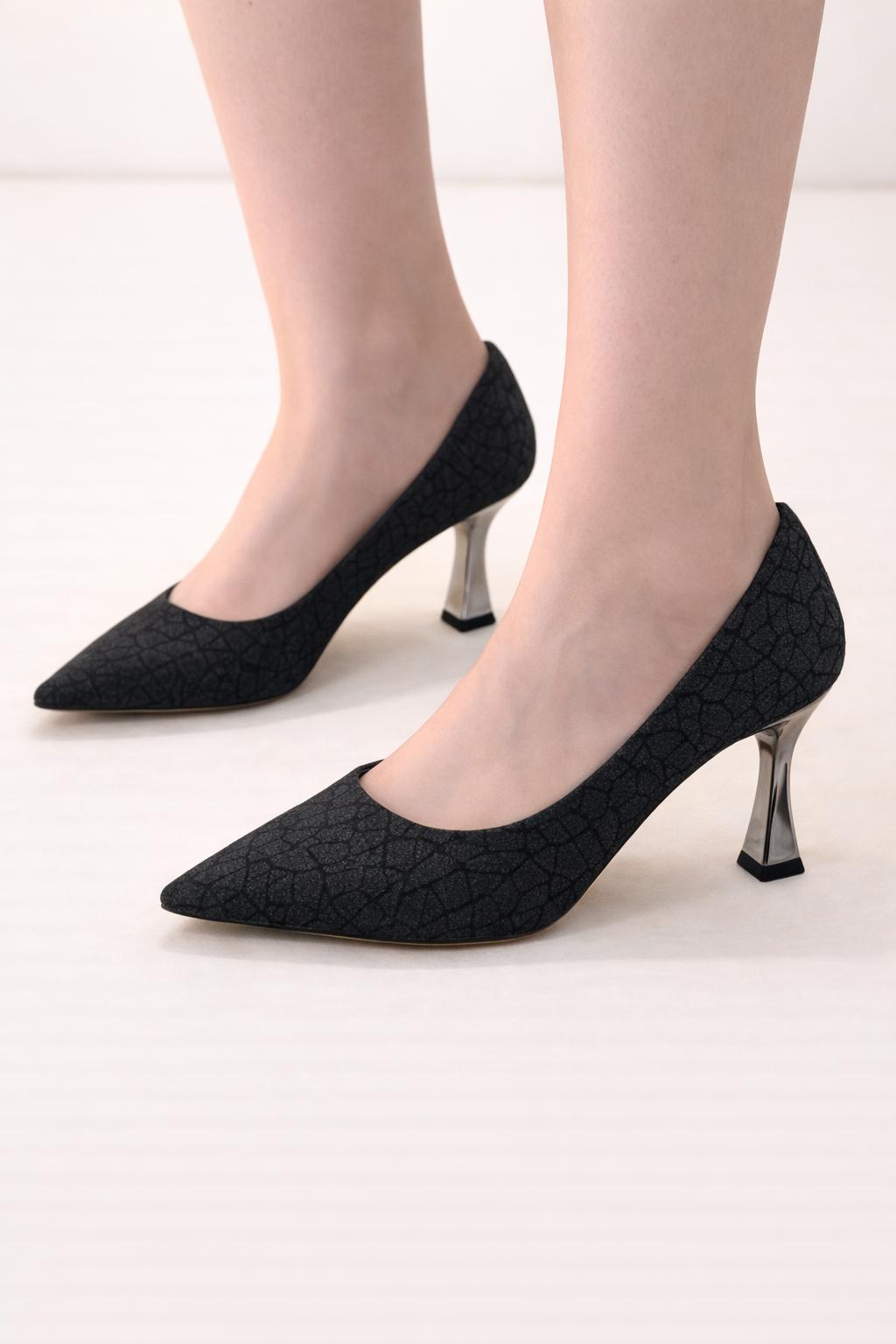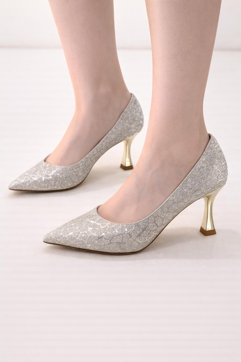 Trendyshose 6772 İnce Topuk Rahat Kalıp Simli Kadın Ayakkabı